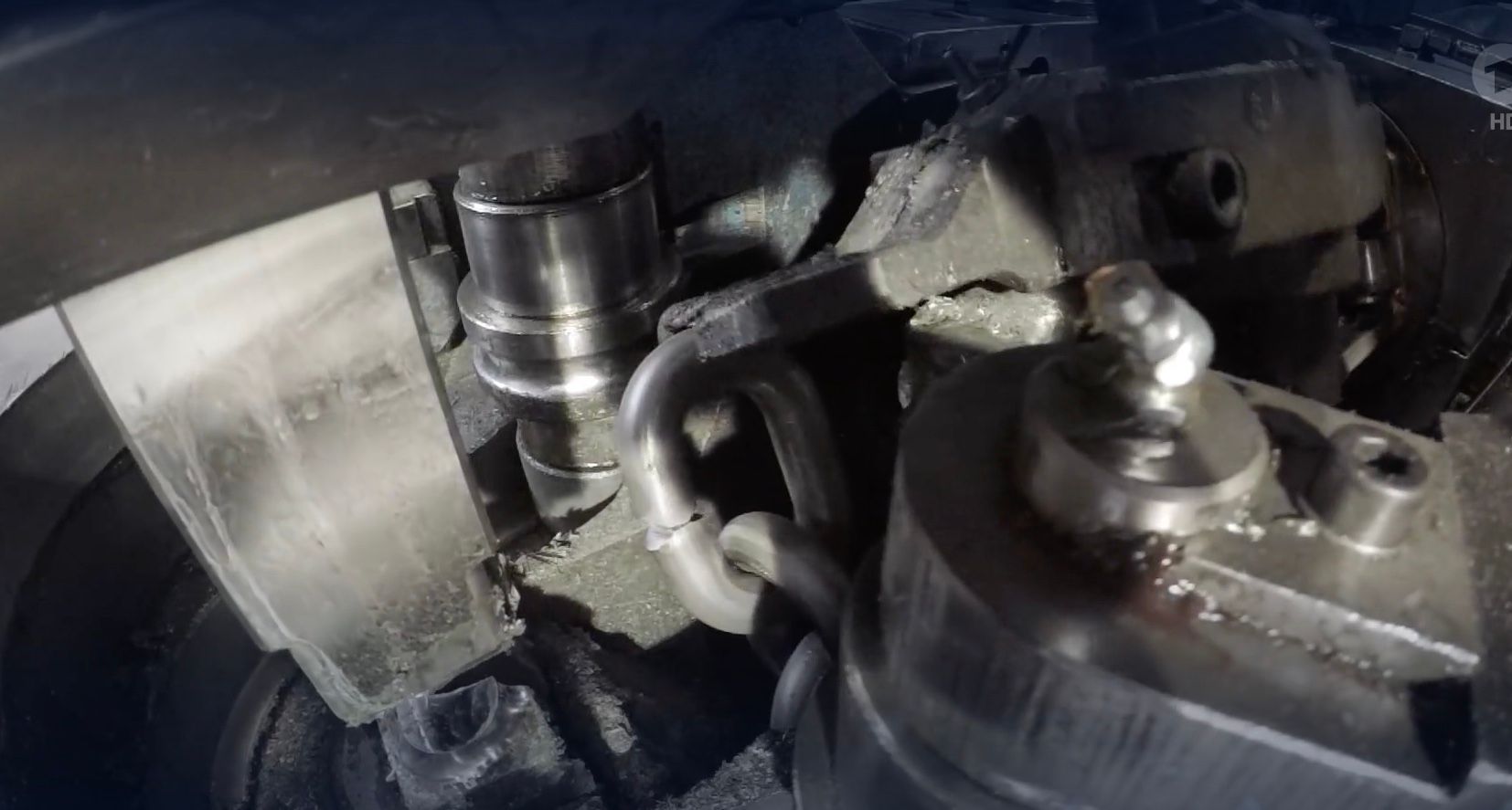 Jedes einzelne Kettenglied wird von einer Maschine aus einem Eisendraht gebogen.